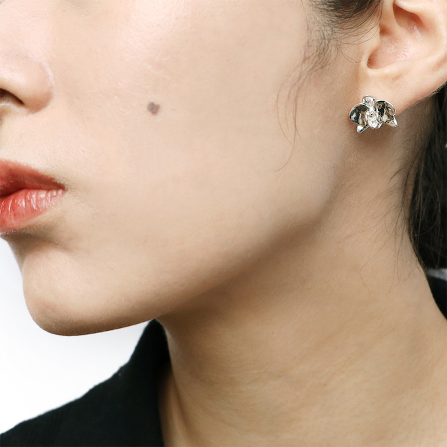胡蝶蘭の花言葉は「幸福が飛んでくる」「純粋な愛」。お守りジュエリーとして身に着けるのもお勧めのピアスです。